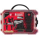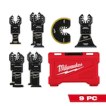 Our OPEN-LOK™ Multi-Tool Blade Variety Kit 9PC provides you with an assortment of blades for multi-material, hardwood and clean wood cutting applications. The set includes a Carbide Teeth metal blade that lasts up to 50X longer than standard bi-metal blades and can be used in a wide range of metal materials while maintaining longer blade life such as; screws, bolts, nails, and more. TITANIUM CHARGED™ Bi-Metal blades have an optimized titanium blend for maximum wear-resistance and up to 15x longer life vs. high carbon steel (HCS) blades. These bi-metal multi-tool blades are ideal for wood with nails, PVC, and drywall. The Triple-Ground Japanese Tooth hardwood blades deliver up to 2X faster cuts than the previous MILWAUKEE® HCS blades and features a PRO-CURVE™ cutting edge for greater control. The Japanese Tooth blades are ideal for fast, clean cuts in hardwood and can also be used in clean wood, PVC, and drywall. The set also includes high carbon steel (HCS) blades designed with aggressive, edge-ground teeth for fast wood cutting. These blades feature a reinforced Universal Fit OPEN-LOK™ anchor for better strength & control and allow for quick blade changes across 100+ multi-tools. Not compatible with Starlock tools. The set is organized in a hard case for storage. MILWAUKEE® oscillating multi-tool blades are designed and made in the USA with global materials.
