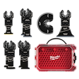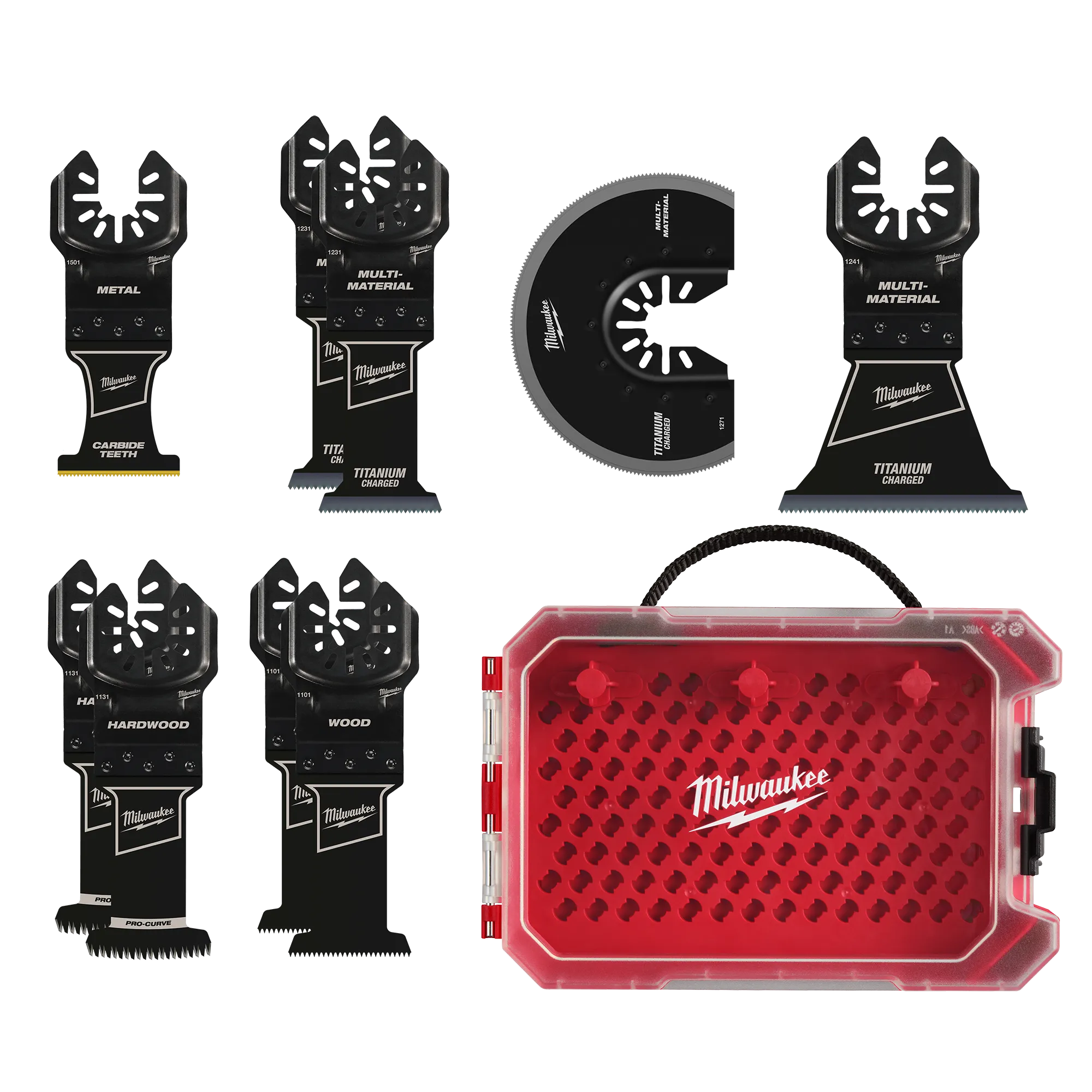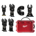 Includes: (1) OPEN-LOK™ 1-3/8" Carbide Teeth Metal Multi-Tool Blade, (2) OPEN-LOK™ 1-3/8" TITANIUM CHARGED™ Bi-Metal Multi-Material Multi-Tool Blade, (1) OPEN-LOK™ 2-1/2" TITANIUM CHARGED™ Bi-Metal Multi-Material Multi-Tool Blade, (1) OPEN-LOK™ 3-1/2" TITANIUM ENHANCED™ Bi-Metal Multi-Material Segmented Multi-Tool Blade, (1) OPEN-LOK™ 1-3/8" HCS Japanese Tooth PRO-CURVE™ Hardwood Multi-Tool Blade, (1) OPEN-LOK™ 1-3/8" HCS Wood Multi-Tool Blade, (1) Storage Case