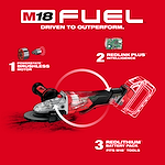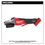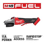 Our M18 FUEL™ 5" Flathead Braking Angle Grinder with Paddle Switch No-Lock is the newest addition to Milwaukee's cordless angle grinder lineup. Generating 11A corded power, a low profile for more access, and RAPIDSTOP™ Brake offers enhanced safety. The POWERSTATE™ Brushless Motor delivers 8,500 RPM and maximum sustained power to complete the toughest grinding and cutting applications, allowing you to push your battery-powered grinders harder and longer than ever before. REDLINK PLUS™ Intelligence ensures unmated levels of performance, protection, and compatibility. The M18™ REDLITHIUM™ HIGH OUTPUT™ XC6.0 Batteries (not included) deliver 50% more power while running 50% cooler than our M18™ REDLITHIUM™ XC Batteries. The low-profile, flathead design allows for greater accessibility to tight spaces. The MILWAUKEE® M18 FUEL™ 5" Flathead Braking Angle Grinder provides enhanced performance, run-time, and accessibility.